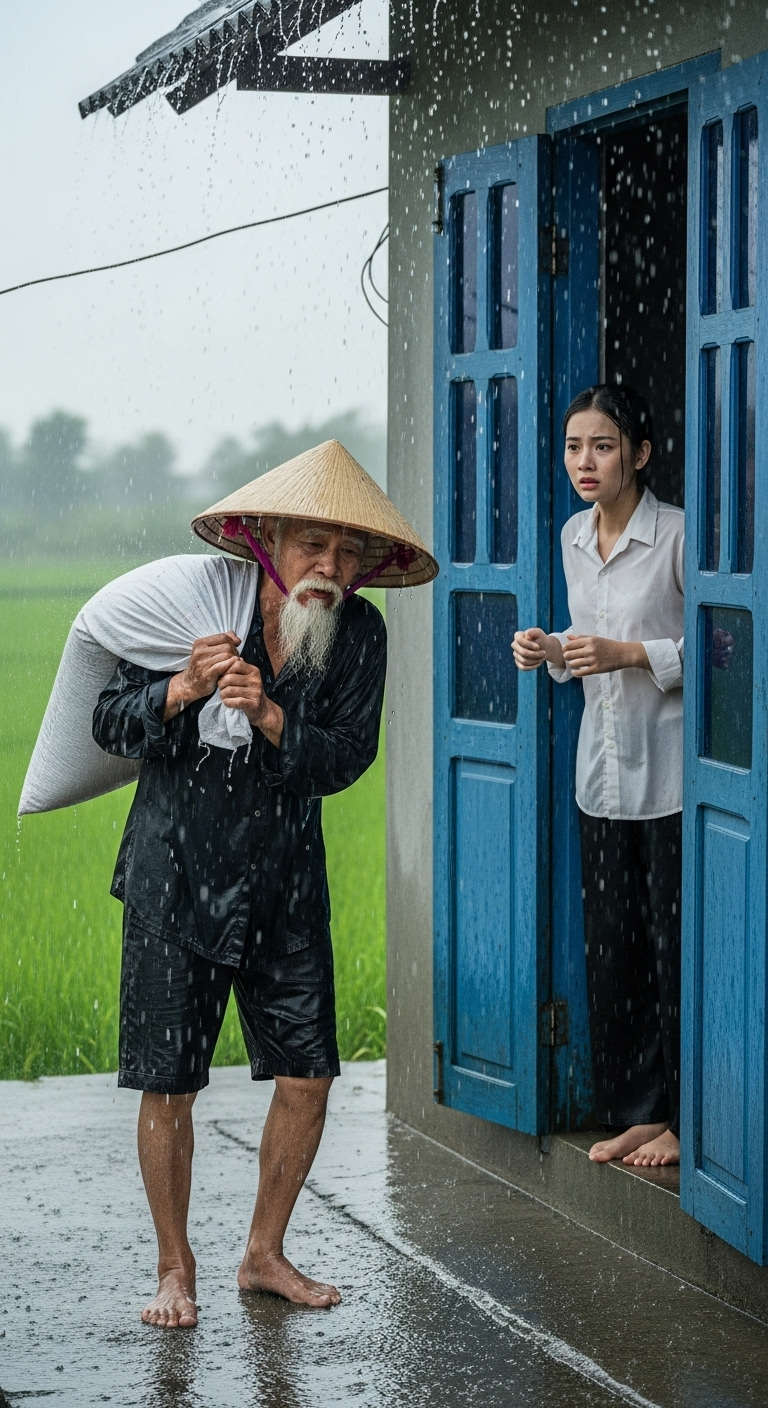 – Ông ơi, mưa to lắm, vào đây trú tạm với con đã.