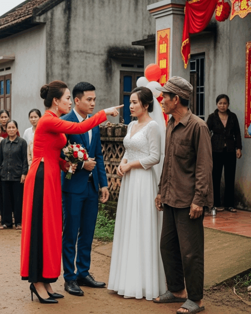 Linh cúi đầu, nước mắt rưng rưng. Cô không tin nổi người phụ nữ sẽ gọi mình là “mẹ” trong lễ cưới lại có thể nói những lời cay nghiệt đến thế — ngay trước mặt cha mình.