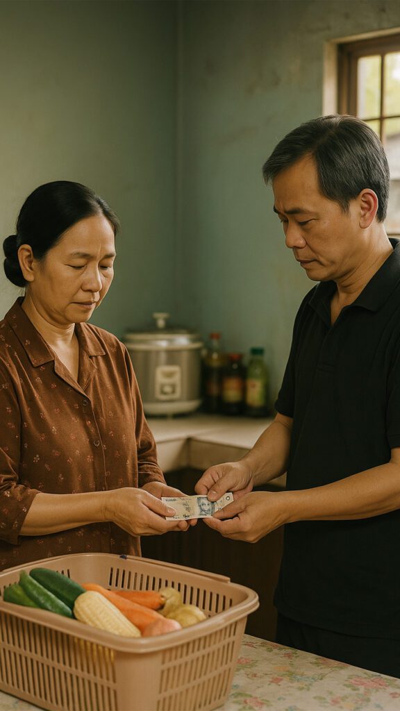 Mỗi sáng, tôi chỉ đưa Liên đúng 100 nghìn — vừa đủ mua rau, cá, và ít đồ lặt vặt. Tôi luôn nói: