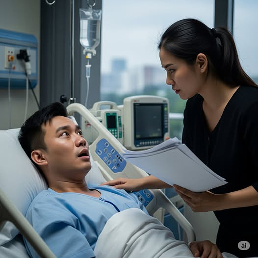 Ngày thứ ba ở bệ-nh vi-ện, khi Dũng tỉnh táo hơn, Linh ngồi xuống cạnh giường, đặt trước mặt anh một tập giấy tờ. “Anh Dũng, em muốn anh xem những thứ này,” cô nói, giọng bình tĩnh nhưng cư/ơng qu;/yết. Dũng ca-u mà-y, cầm tập giấy lên.