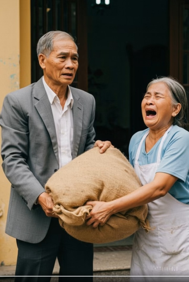 Ngày chị Liên chuẩn bị rời đi, cả gia đình ông Tuấn tiễn chị ra cửa. Bé Minh và bé Lan ôm chị khóc nức nở, khiến chị cũng không cầm được nước mắt. Trước khi chị lên xe về quê, ông Tuấn bất ngờ gọi chị lại: “Chị Liên, đợi tôi một chút.” Ông vào nhà, mang ra một bao tải cũ rách, bên ngoài dính đầy bụi bẩn, rồi đưa cho chị. Ông nói: “Chị cầm cái này về quê. Đây là món quà của tôi dành cho chị.”