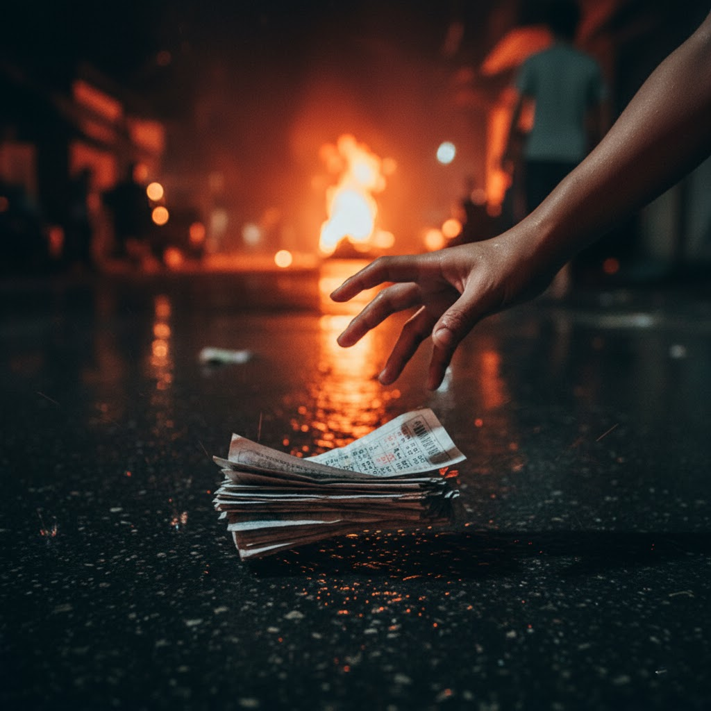 Minh kiên quyết lắc đầu. “Cháu không cần tiền. Ai gặp nạn thì cháu phải giúp.” Cậu bé chỉ cúi xuống nhặt cuộn vé số ướt sũng của mình.