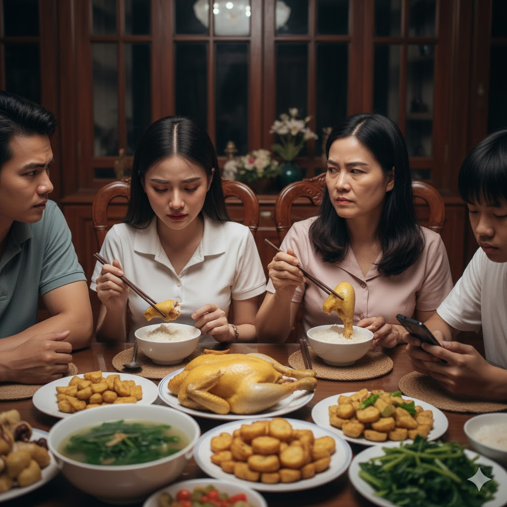 Nhưng tôi biết, chuyện hôm nay không chỉ là một bữa ăn. Đó là ranh giới giữa hai thế giới – nơi một bên coi tôi là “người ngoài”, còn bên kia thì không đủ sức bảo vệ.