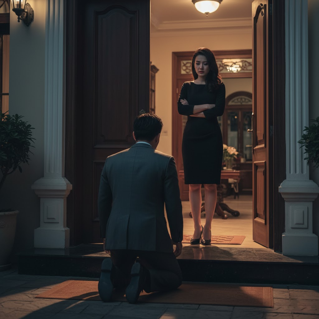 Anh quỳ xuống. Lần đầu tiên sau bao năm, tôi thấy anh rơi nước mắt: “Anh sai rồi. Tất cả chỉ vì anh tham lam… Nhưng khi mất em, anh mới nhận ra… tiền bạc chẳng cứu nổi anh.”