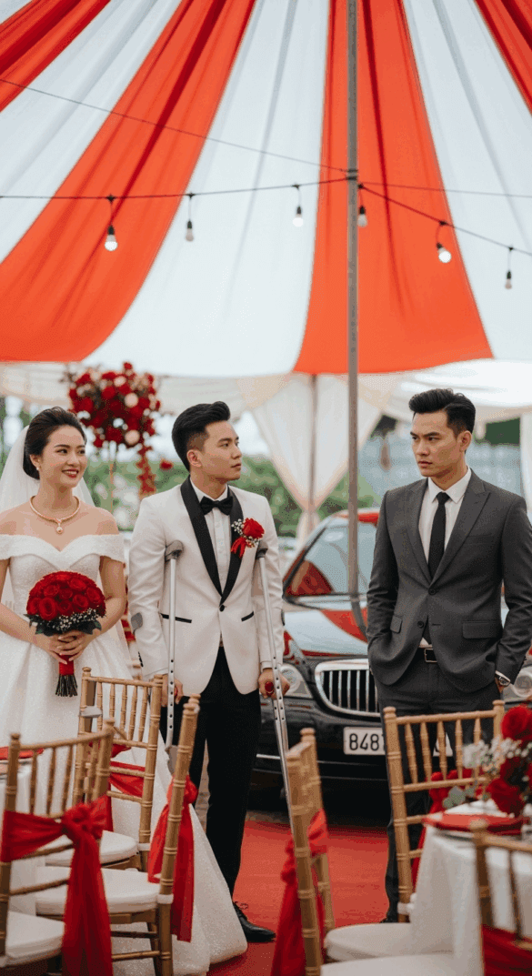 Lan bước ra trong chiếc váy cưới giản dị. Cô gầy hơn trước, nhưng ánh mắt lại sáng và bình yên đến lạ. Bên cạnh cô là chú rể – đúng như lời đồn, anh ta ngồi xe lăn, hai chân gầy yếu. Tôi nhếch môi cười, bước đến chào như người “trên cơ”: