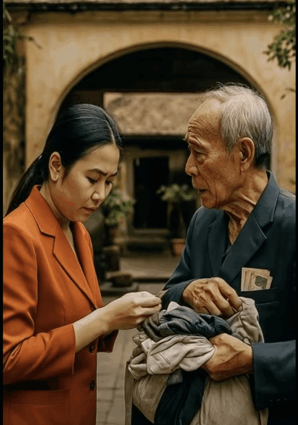 Tôi nhớ hôm trước mẹ chồng bảo “ông không mang tiền tiêu riêng, đi đâu cũng keo kiệt”, nên tôi nảy ý muốn lén nhét ít tiền vào túi ông — coi như tấm lòng con dâu.