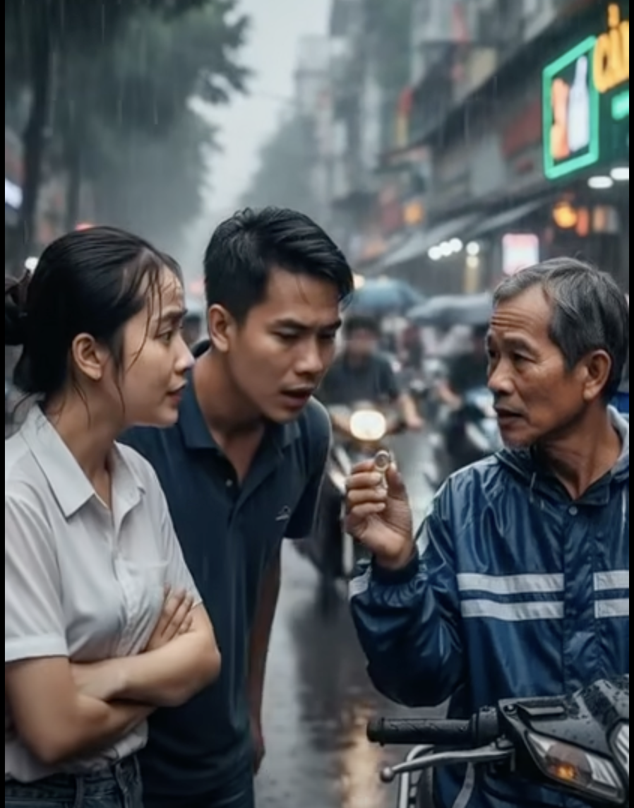 Bác chìa chiếc nhẫn ra. Cô gái bàng hoàng, rồi òa khóc: