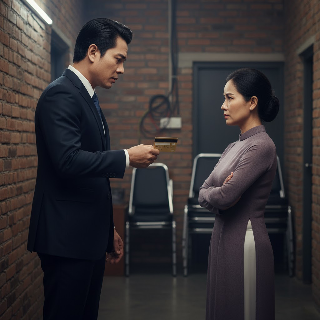 Thùy không nhận. Cô nhìn thẳng vào chiếc thẻ, rồi nhìn vào mắt Phong.