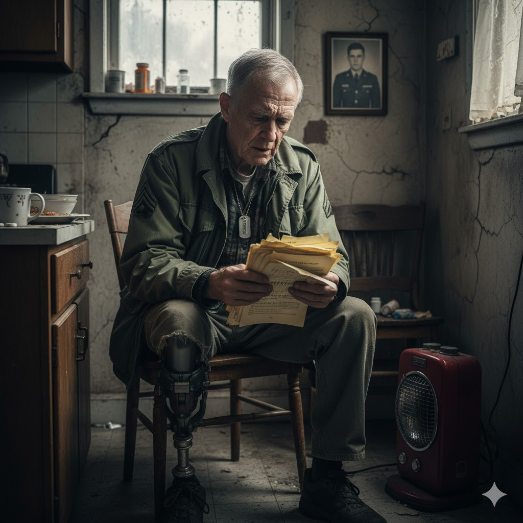SGM Miller, in his early 80s and navigating his small, freezing apartment with a heavy prosthetic, is forced to spend his days fighting phone trees and compiling paperwork to prove to a machine that he is, in fact, alive. The absurdity is devastating: a man who faced death countless times in uniform is now battling a database error that threatens to end his life through bureaucratic neglect.