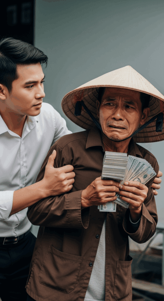 Tôi nhìn quanh, thấy vài đồng nghiệp đi ngang qua, họ liếc nhìn chúng tôi với ánh mắt tò mò. Lòng tôi tràn ngập một cảm giác xấu hổ đến tột cùng. Tôi chỉ muốn độn thổ ngay lúc đó. Tôi không muốn ai biết đây là cha mình, một ông lão nông dân quê mùa, chân chất.