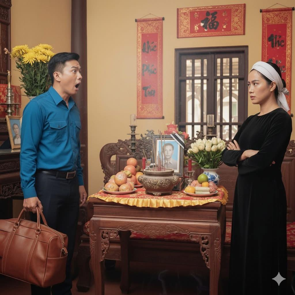 Tôi quỳ sụp xuống, nước mắt tràn ra. Bức ảnh trên bàn thờ vẫn nhìn tôi, nụ cười trong ảnh giờ trở thành nỗi nhục không thể xoá.