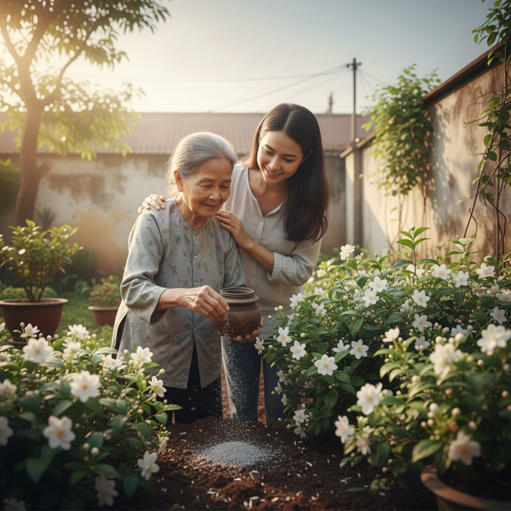 Tôi cùng bà rải tro. Từ ngày ấy, mùi hắc biến mất. Thay vào đó là hương hoa nhài – nhẹ và ấm như hơi thở của ký ức.