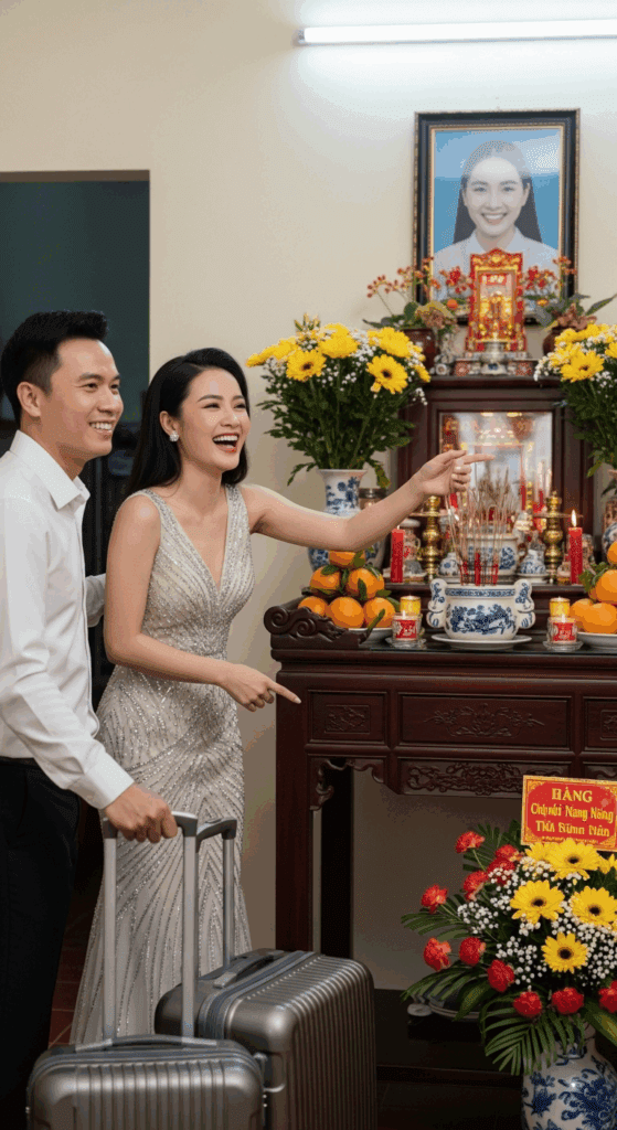 Đêm xuống, Tuấn dọn dẹp bàn thờ, ánh đèn vàng hắt lên di ảnh Mai. Trong lòng anh chợt có chút chênh vênh, nhưng rồi cái cảm giác tội lỗi ấy nhanh chóng bị lấp bởi lời thủ thỉ của Hân phía sau: